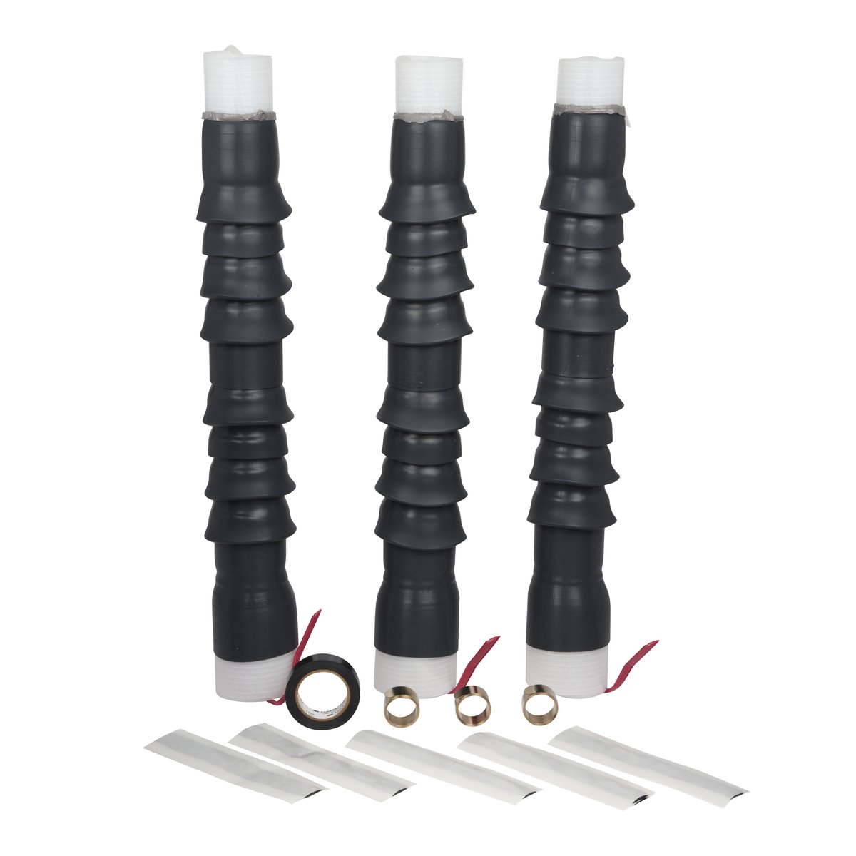 3M™ Kaltschrumpf-Kabelabschluss-Set für mittlere Spannungen der Serie QT-III mit integriertem abdichtendem Mastix. Dank der Kaltschrumpf-Silikonisolierung bietet das Produkt eine einfache und sichere Lösung für den Kabelendverschluss bei mittleren Spannungen. Dabei ist es besonders beständig gegen Umwelteinflüsse.