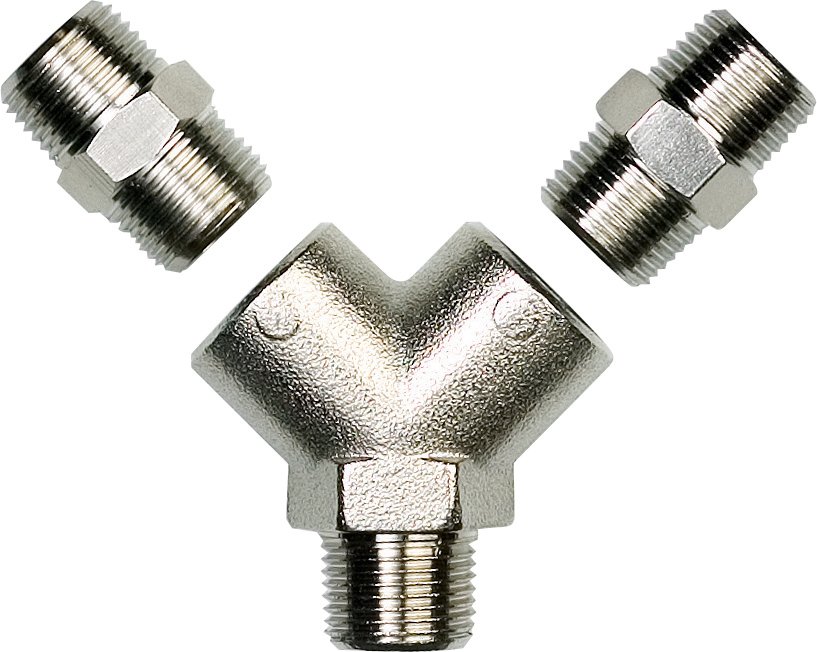 Der Aircare 2-fach Ausgang 3120301P verfügt über eine 2-fach Kupplung sowie ein beidseitiges 3/8 " Innengewinde plus Adapter mit 3/8 " Außengewinde.