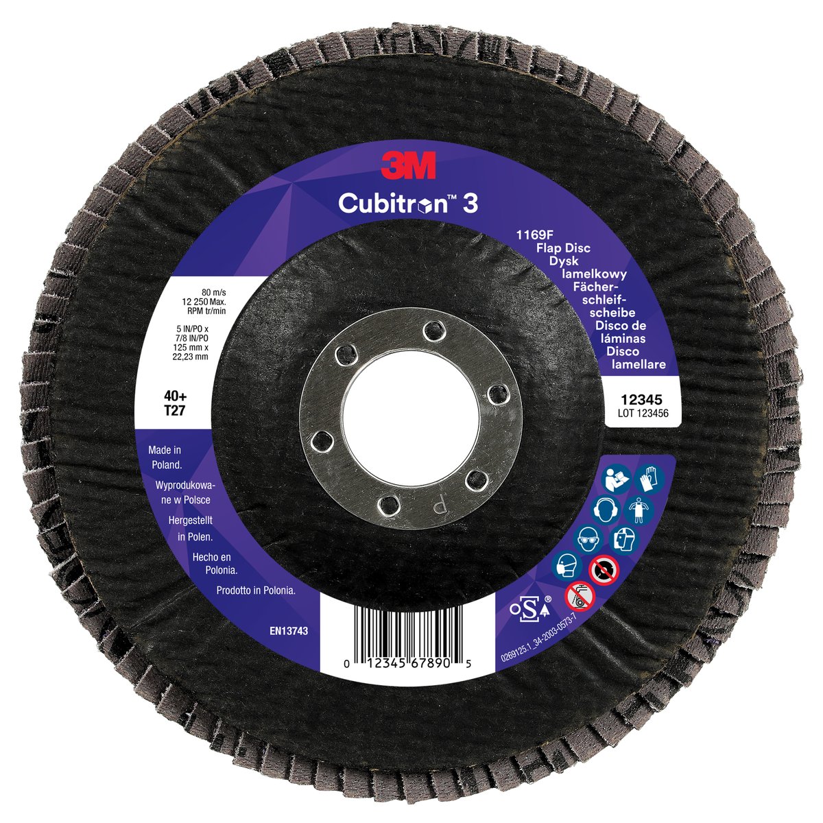 Nutzen und Einsatzmöglichkeiten von "3M™ Cubitron™ 3 Fächerschleifscheibe 1169F, 40+, T27-Flach, 125 mm x 22,23 mm, 10/Pack, 100 Stück/Packung"