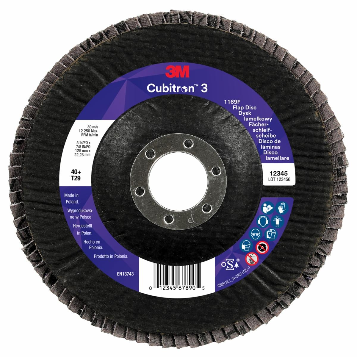 Nutzen und Einsatzmöglichkeiten von "3M™ Cubitron™ 3 Fächerschleifscheibe 1169F, 40+, T29-Konisch, 125 mm x 22,23 mm, 10/Pack, 100 Stück/Packung"