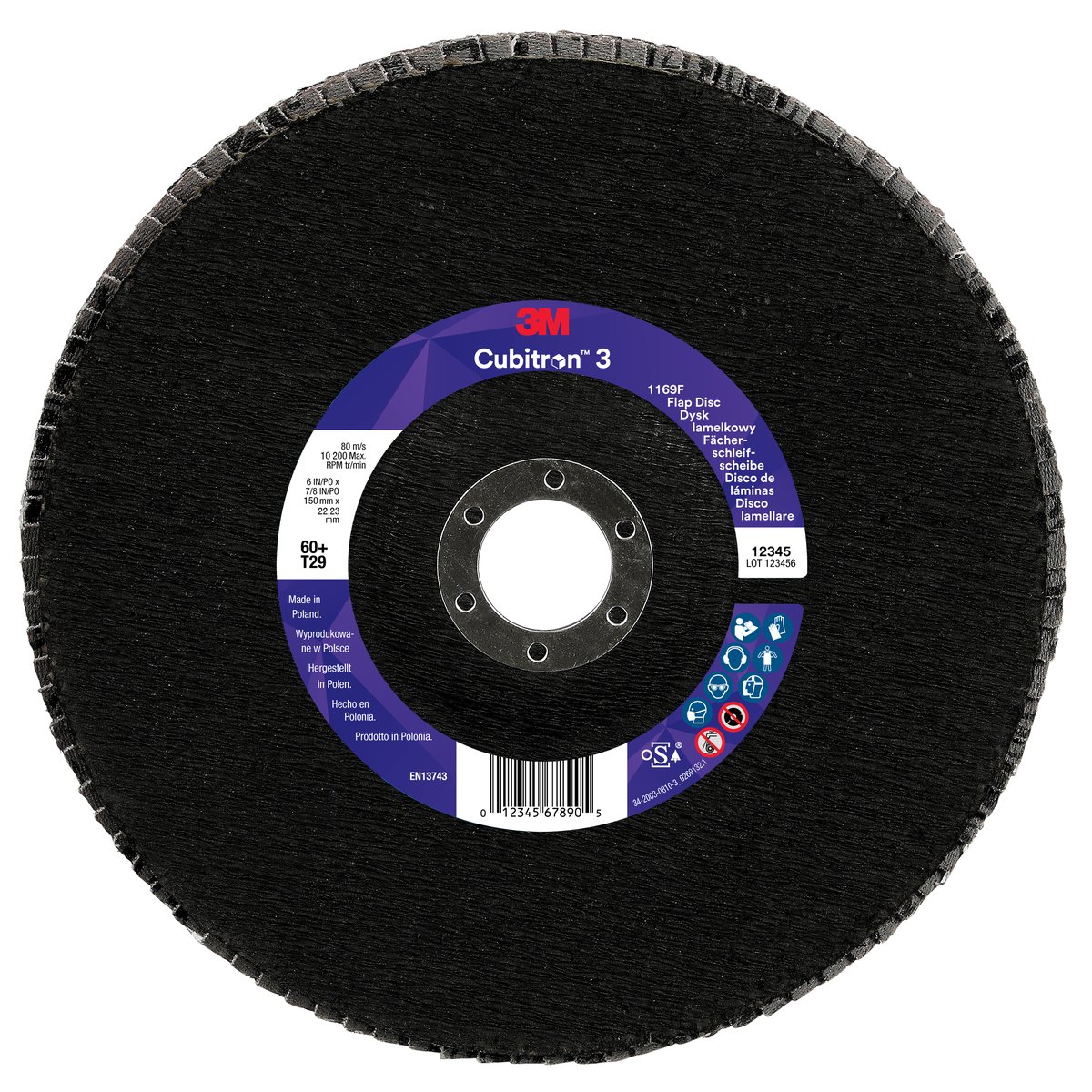 Nutzen und Einsatzmöglichkeiten von "3M™ Cubitron™ 3 Fächerschleifscheibe 1169F, 60+, T29-Konisch, 150 mm x 22,23 mm, 5/Pack, 20 Stück/Packung"