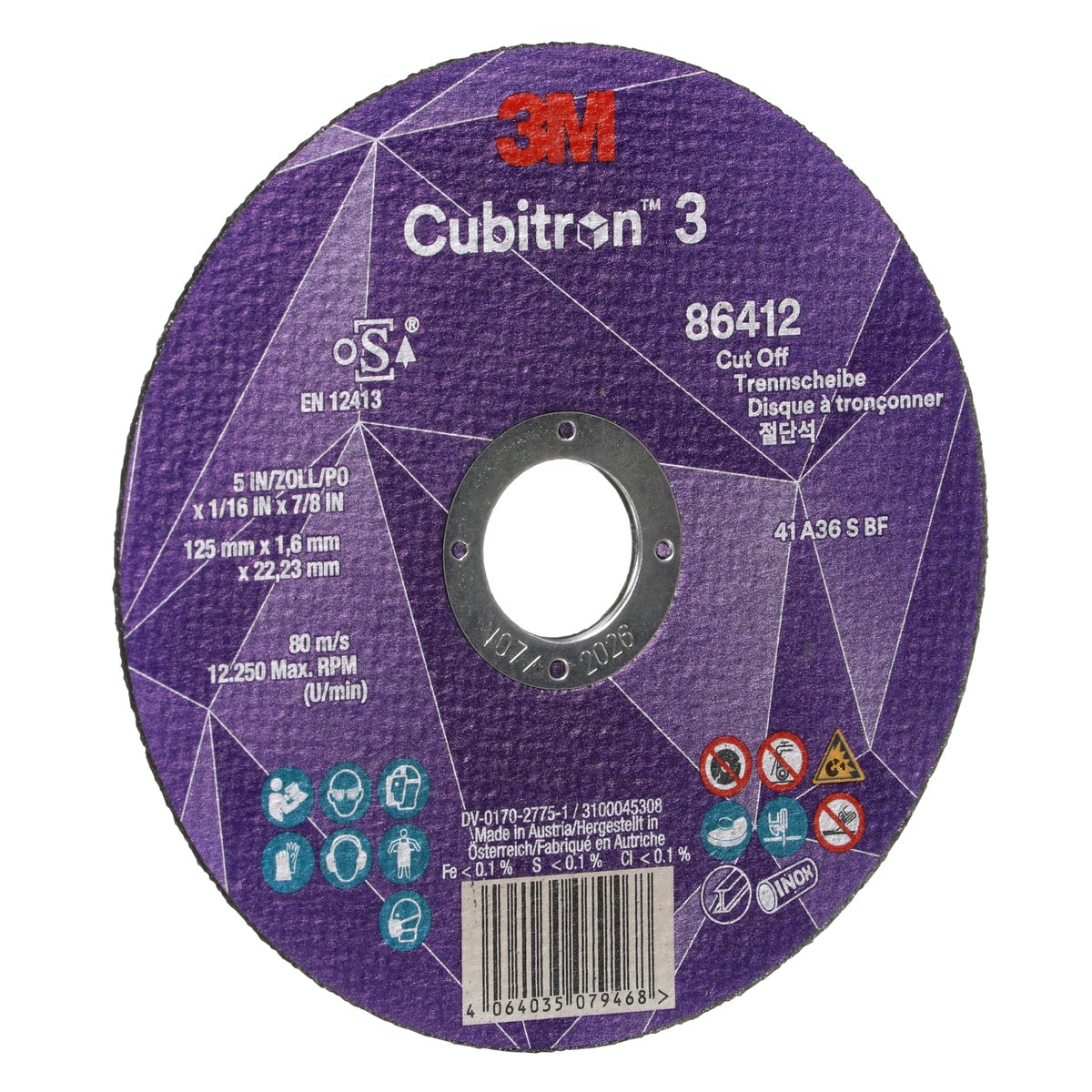Nutzen und Einsatzmöglichkeiten von "3M™ Cubitron™ 3 Trennscheibe, 86412, 36+, T41, 125 mm x 1,6 mm x 22,23 mm, EN, 25/Pack, 50 Stück/VE"