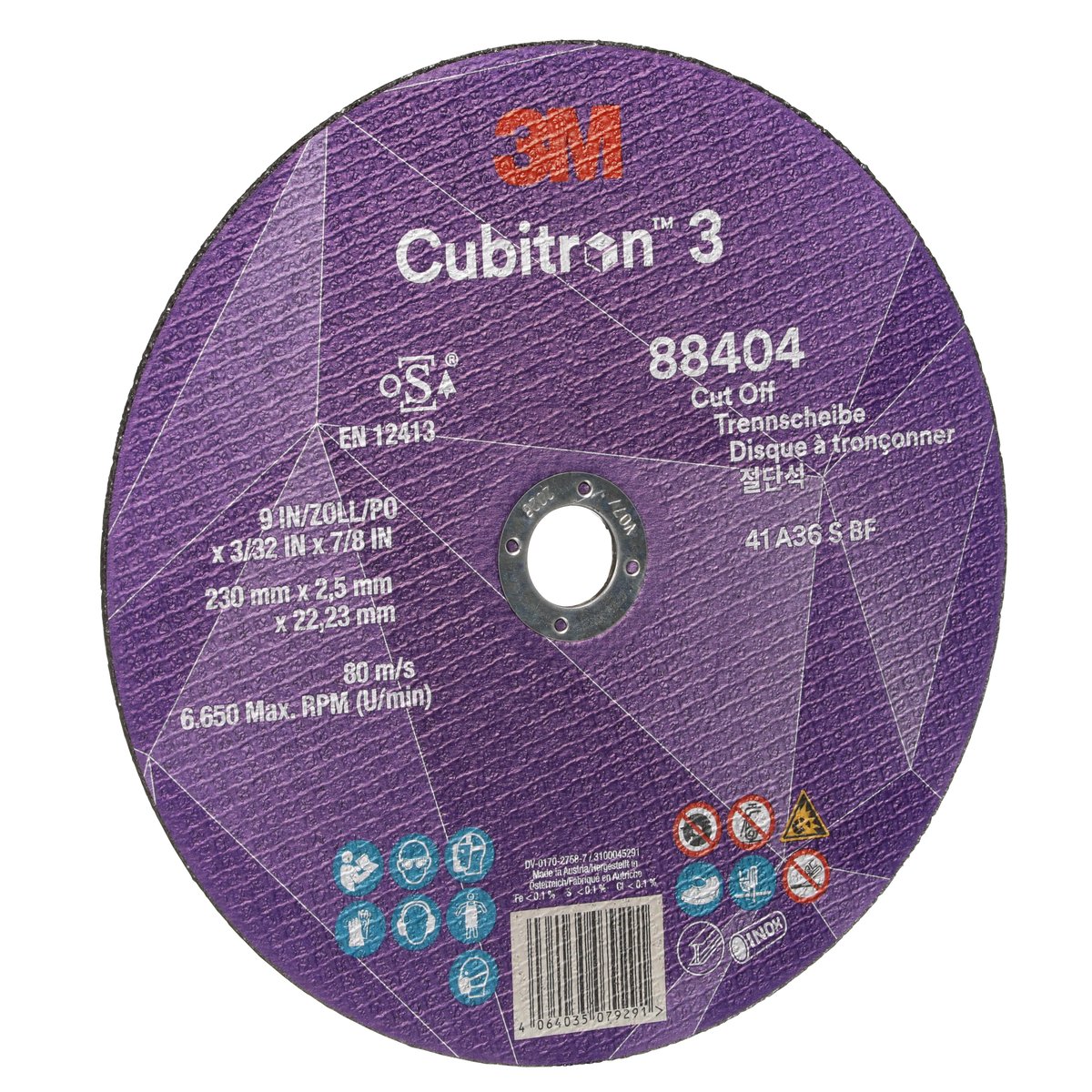 Nutzen und Einsatzmöglichkeiten von "3M™ Cubitron™ 3 Trennscheibe, 88404, 36+, T41, 230 mm x 2,5 mm x 22,23 mm, EN, 25/Pack, 50 Stück/VE"