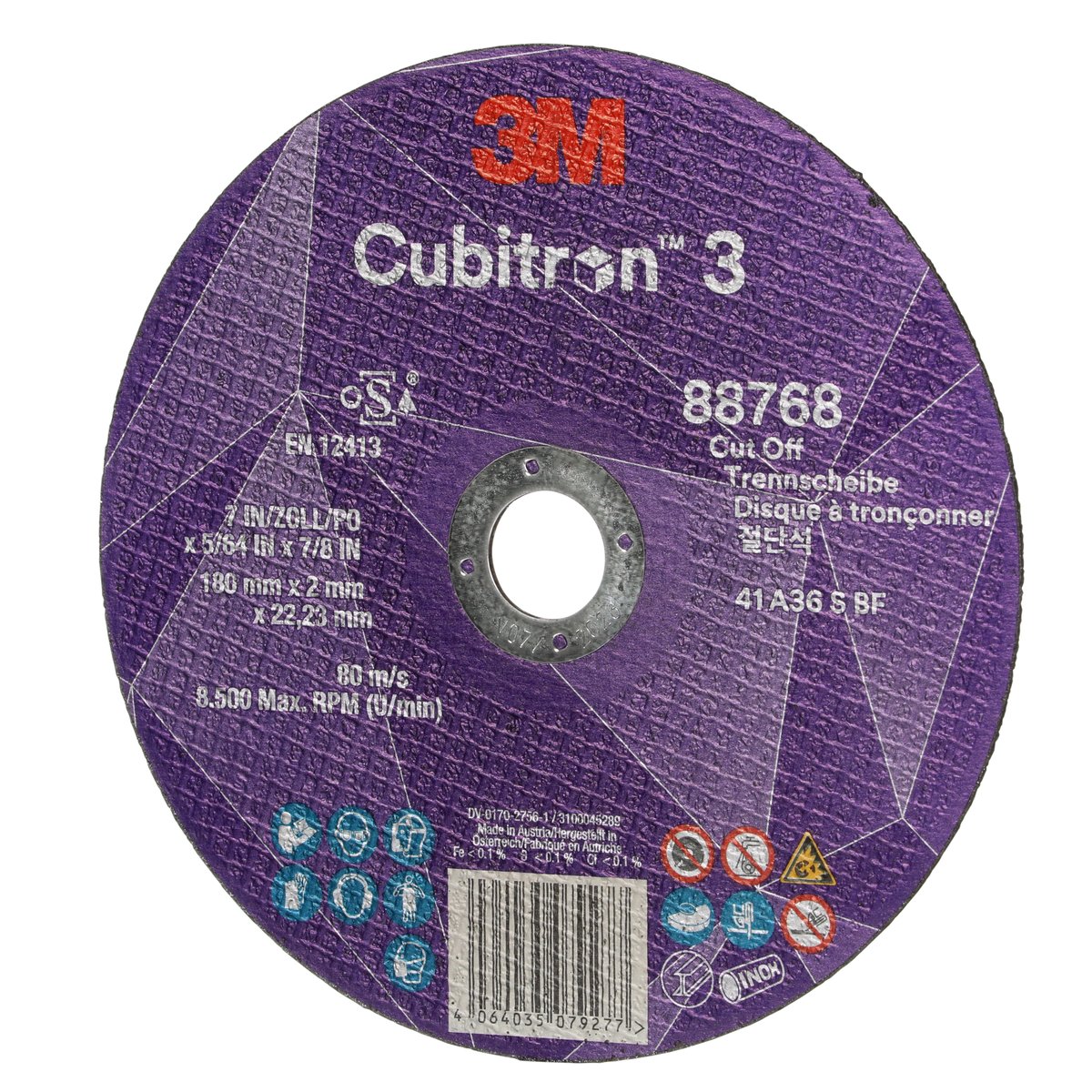 Nutzen und Einsatzmöglichkeiten von "3M™ Cubitron™ 3 Trennscheibe, 88768, 36+, T41, 180 mm x 2 mm x 22,23 mm, EN, 25/Pack, 50 Stück/VE"