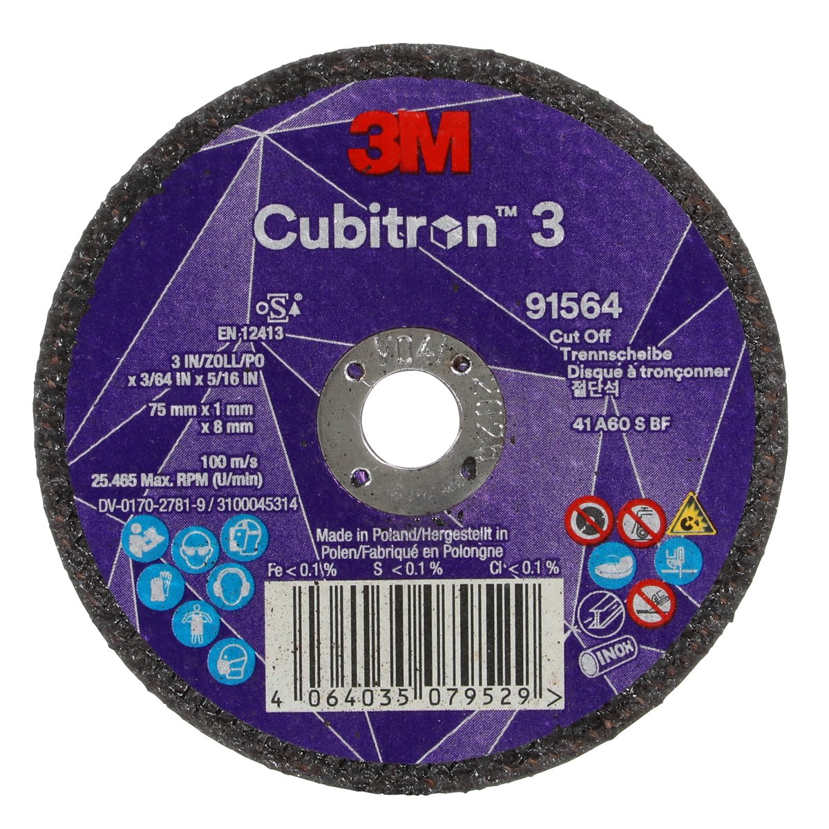 Nutzen und Einsatzmöglichkeiten von "3M™ Cubitron™ 3 Trennscheibe, 91564, 60+, T41, 75 mm x 1 mm x 8 mm, EN, 25/Pack, 50 Stück/VE"