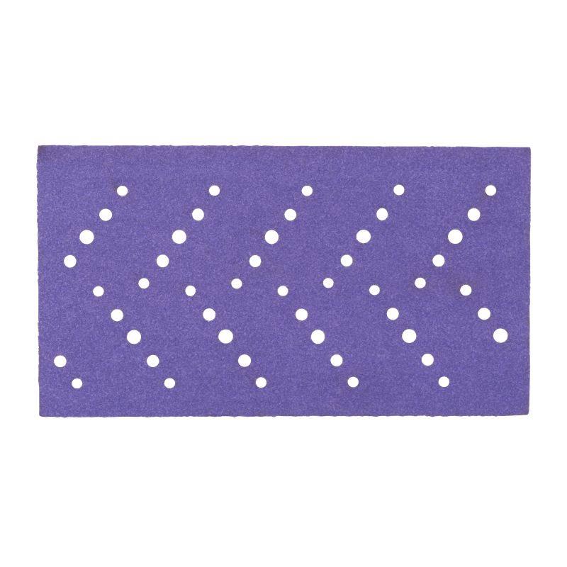 3M™ Cubitron™ II Hookit™ Purple Schleifstreifen 737U sind ein hochwertiges, haltbares Schleifpapier mit sich selbst schärfenden Schleifkörnern, die eine enorme Abtragsleistung ermöglichen, während die Multihole-Lochung für optimale Staubabsaugung sorgt.