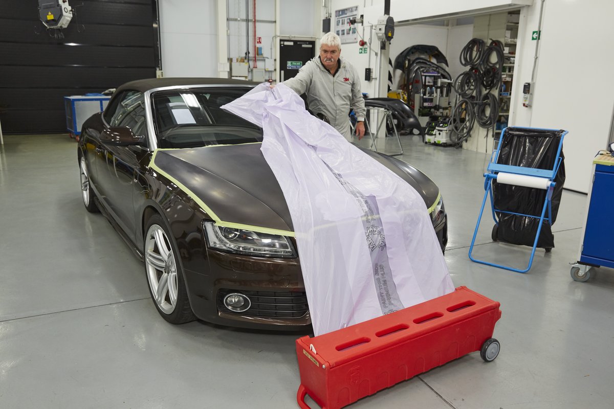 Mit unserem tragbaren 3M™ Dispenser für Abdeckfolie können Sie Abdeckfolien von 3M aufbewahren und entnehmen. Folien nicht im Lieferumfang enthalten.