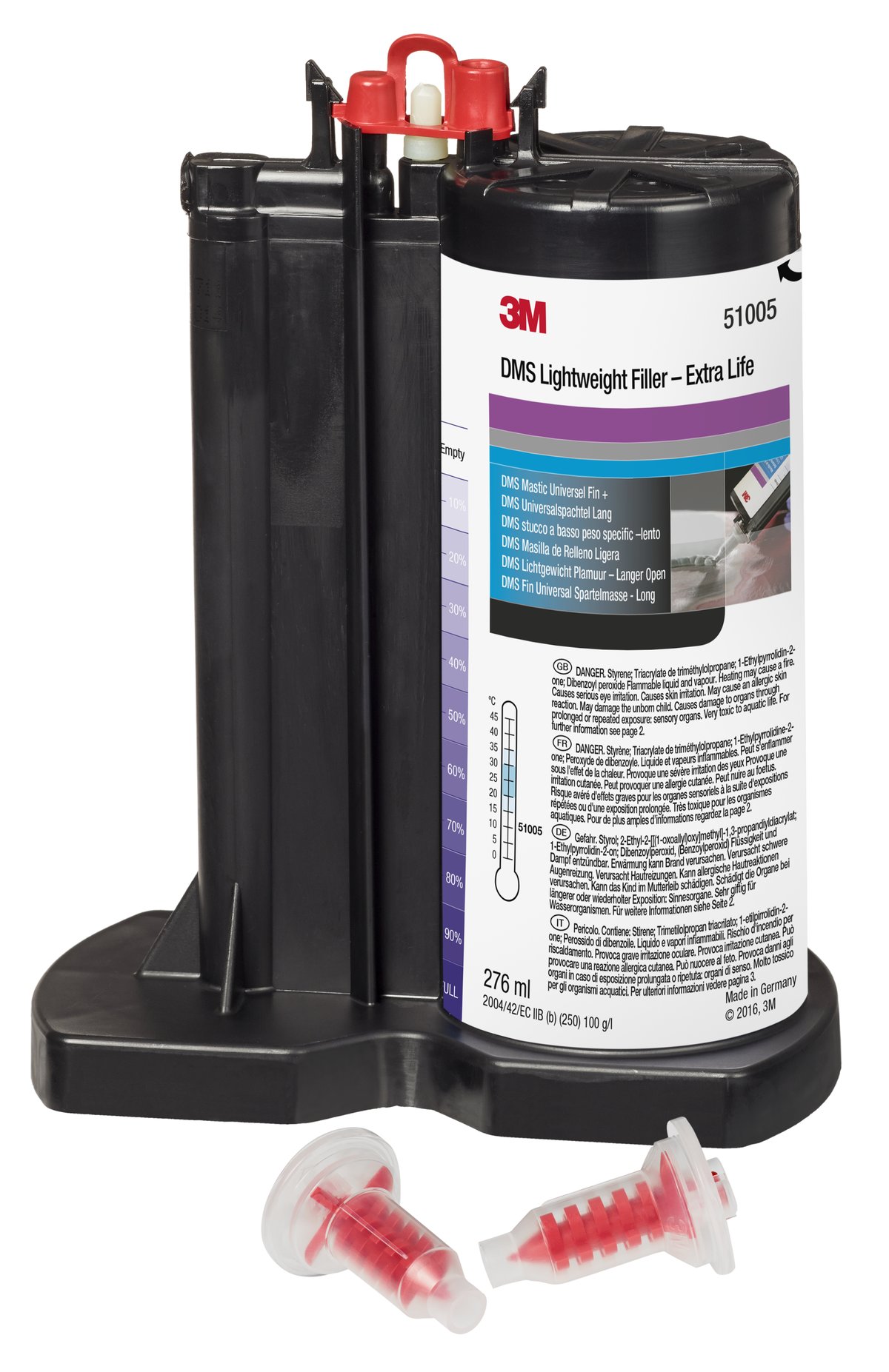 3M™ DMS Leichter Universalspachtel ist eine sehr glatte, leichte Karosseriespachtelmasse und wird in Kartuschen mit Härter gebrauchsfertig für den Auftrag mit dem 3M™ Dynamic Mixing System angeboten. Der Spachtel bietet eine längere Verarbeitungszeit und ist deshalb ideal für höhere Temperaturen oder größere Arbeitsflächen.