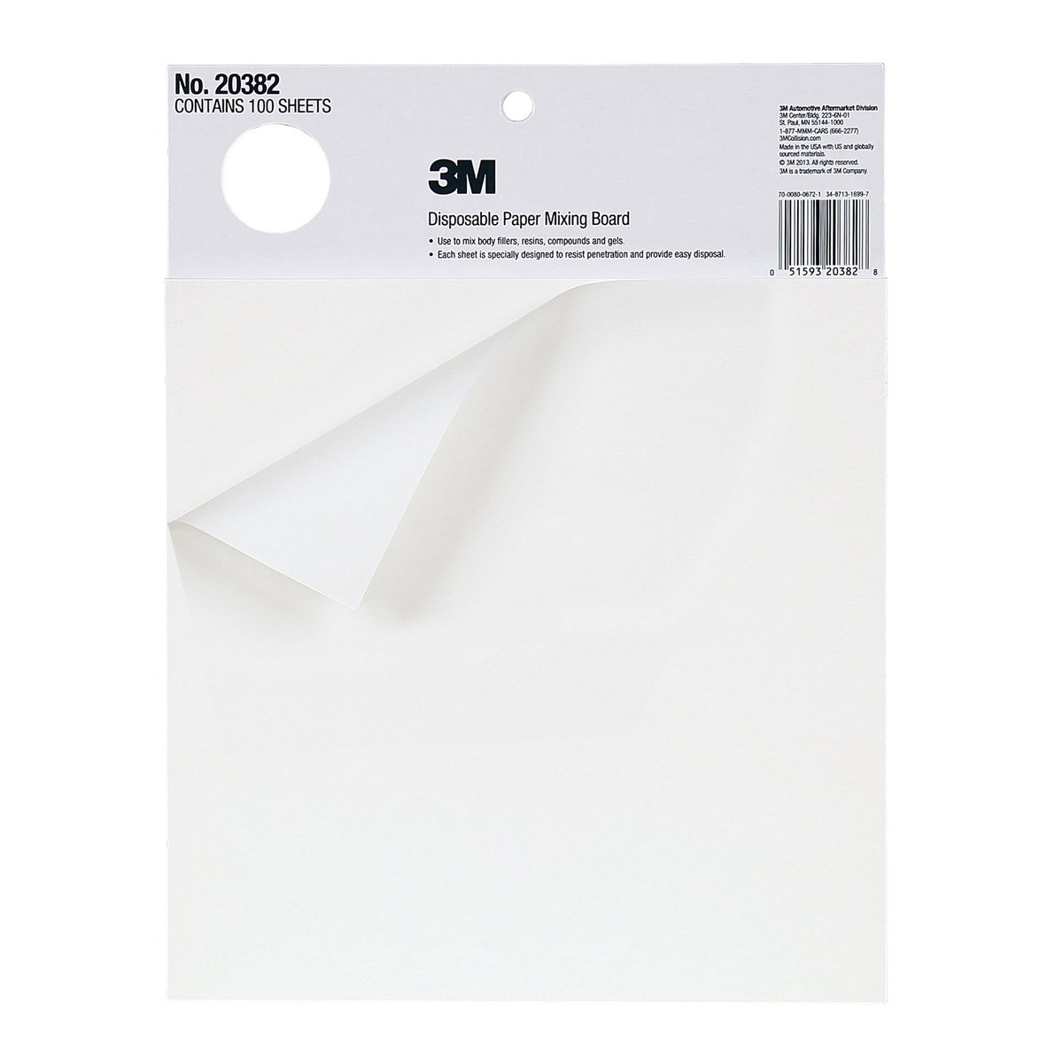 Nutzen Sie die 3M™ Einweg-Mischunterlage aus Papier als sauberere, kostengünstigere Option. Jede Mischunterlage umfasst 100 saubere Papierbögen zum Abreißen, sodass Ihnen bei der Vorbereitung von Spachtelmasse immer eine neue Mischfläche bereitsteht. Diese Bögen sind frei von Verunreinigungen, wie sie häufig in Materialien wie Karton zu finden sind. Diese können Wachse, Fasern und andere Fremdstoffe enthalten, die sich bei Kontakt mit Lösungsmitteln zersetzen, sodass die Spachtelmasse weniger standfest ist und ihre Funktion möglicherweise nicht mehr erfüllt. Im Gegensatz zu Karton sind diese 25 cm x 27,5 cm großen Papierbögen nicht porös und reagieren nicht mit üblicherweise in Spachtelmassen vorhandenen Lösungsmitteln. Die Spachtelmasse wird also nicht verschmutzt. Reißen Sie nach dem Mischen den Papierbogen einfach ab, um eine frische Mischfläche zu erhalten und Reinigungszeit zu sparen.