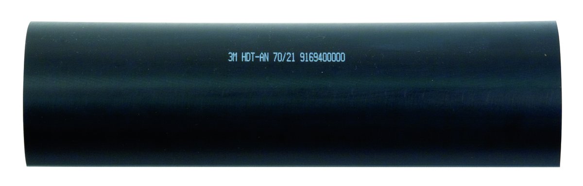 Bei dem 3M™ Warmschrumpfschlauch HDT-AN handelt es sich um einen dickwandigen, halogenfreien Warmschrumpfschlauch aus modifiziertem, strahlenvernetzten Polyolefin. Er eignet sich zur Verwendung an allen Kunststoff- und Massekabeln sowohl für Verlegungen im Innenraum als auch für Freiluft- und Erdverlegungen. Dabei dient er der Isolation und Abdichtung von Verbindungen jeglicher Art, insbesondere auch als Außenschlauch für Steuerleitungsgarnituren. Zur besseren Versiegelung verfügt er über eine Klebstoffbeschichtung auf der Innenwand. Der äußerst alterungsbeständige Warmschrumpfschlauch ist UV-beständig und resistent gegen viele chemische Einflüsse. Seine Schrumpfrate beträgt vier zu eins und er ist einsetzbar in einem Temperaturbereich von –55 °C bis +130 °C. Er ist nicht selbstverlöschend.