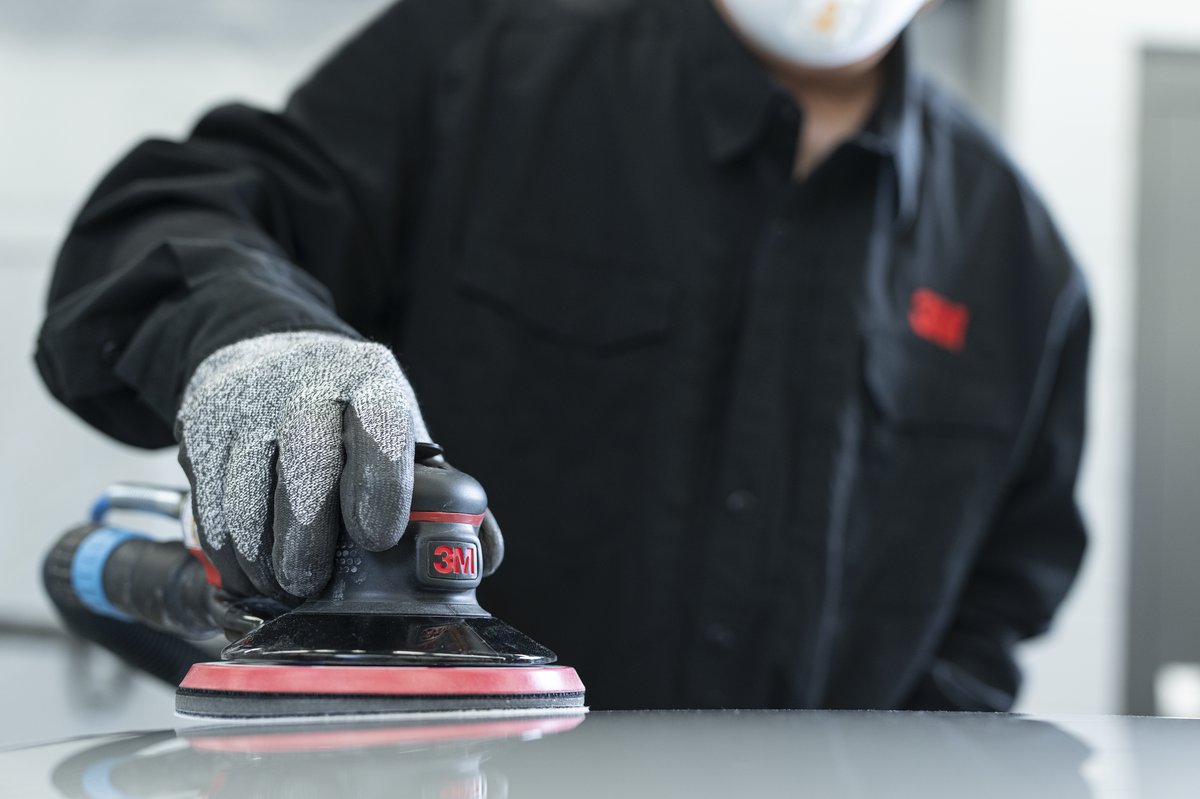 - Letzter Schleifschritt vor dem Auftragen des Basislacks.