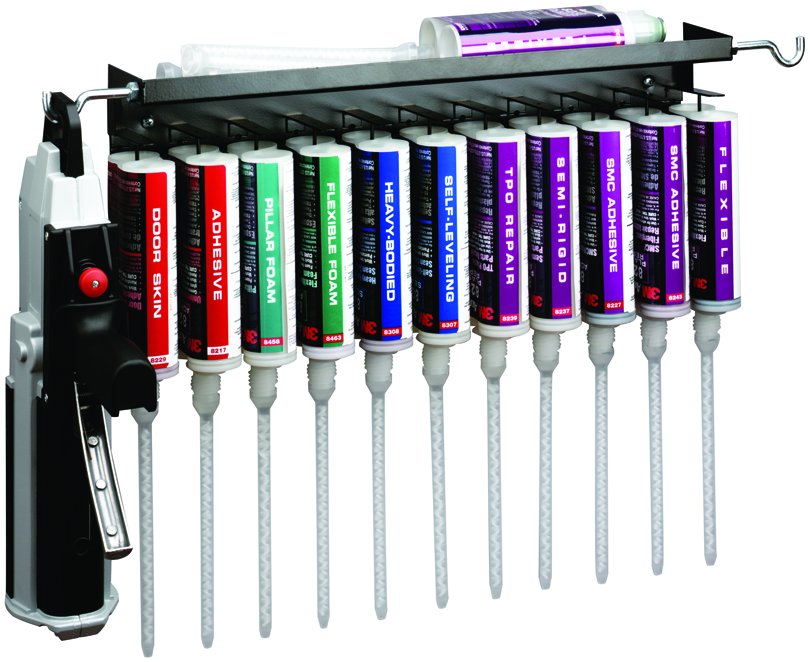 Speziell auf höhere Produktivität ausgelegt Die grundsätzliche Funktion unseres 3M™ Kartuschenhalters ist, dass Sie damit Ihre 3M Kartuschen mit 200 und 400 ml sowie Ihre Applikatoren an einem Ort aufbewahren können. Aber mit diesem robusten Metallhalter sind diese auch immer bequem und problemlos griffbereit. Kartuschen mit Schaumstoffen oder Klebstoffen sind so sofort zur Hand und können nach der Verwendung wieder aufgehängt werden. Das ermöglicht effizientere Arbeitsschritte, einschließlich beim Aufschäumen von Türbeplankungen, beim Verkleben von Fahrzeugblechen, beim SMC oder bei der Reparatur flexibler Teile. Der Halter verfügt über acht Halterungen, um Kartuschen sicher nebeneinander aufzuhängen. So können Sie immer auf einen Blick genau erkennen, was jede einzelne Kartusche enthält. Die Kartuschen lassen sich einfach auf- und abhängen. Da sie sich in einer senkrechten Position befinden, können die Auftragsdüsen aufgesteckt bleiben, so dass eine sofortige Verwendung möglich ist. Ein robuste Ablagefläche auf der Oberseite bietet zusätzlichen Stauraum und ermöglicht das Anbringen von Haken, mit denen auf jeder Seite eine 3M Applikatorpistole aufgehängt werden kann. Die Montage des Kartuschenhalters ist ebenso einfach. Er verfügt über eine starre Metallrückseite mit vier Langlöchern, sodass sie ihn schnell und sicher an Ihrer Werkstattwand mit einfachen Kopfschrauben oder Nägeln aufhängen können. 3M Wissenschaft für ein besseres Arbeiten an Karosserien Die Innovationen, die in die Entwicklung unserer Klebstoffe zur Autoreparatur eingehen, finden sich auch in unserem Zubehör wieder: mit dem 3M™ Kartuschenhalter können Sie Ihre 3M Kartuschen mit Schaumstoffen und Klebstoffen effizienter verwenden. Ganz einfach ausgedrückt: Wenn sich ein Kartuschenhalter so mühelos montieren lässt und die Verwendung und Aufbewahrung verschiedener Produkte so einfach macht, dann bietet er mehr als nur Stauraum. Er ermöglicht für Ihren gesamten Betrieb eine bessere Organisation, schnellere Arbeitsschritte und reduziert den Ausschuss.