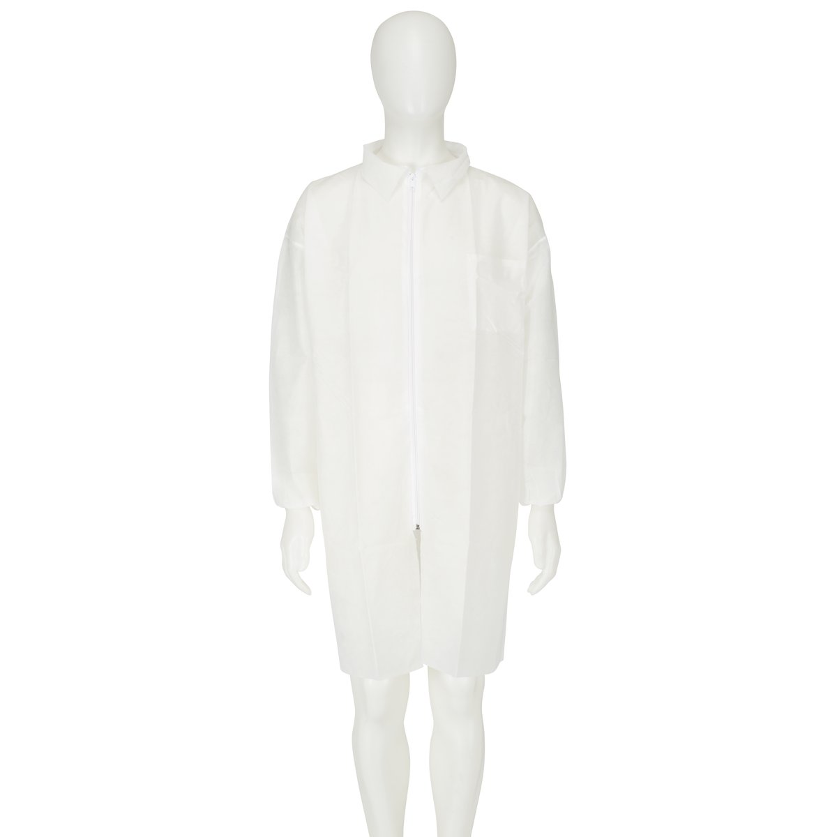 - Der Kittel für Besucher besteht aus leichtem, atmungsaktivem Material und ist ideal für Hygieneanwendungen