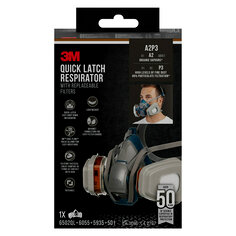 - Der Satz enthält: 1 3M™ Quick Latch-Halbmasken-Gehäuse 6502 mittlerer Größe, 1 Paar 3M™ Filter 6055 A2, 1 Paar 3M™ Filter 5935 P3 und 1 Paar 3M™ Filterhalterungen 501