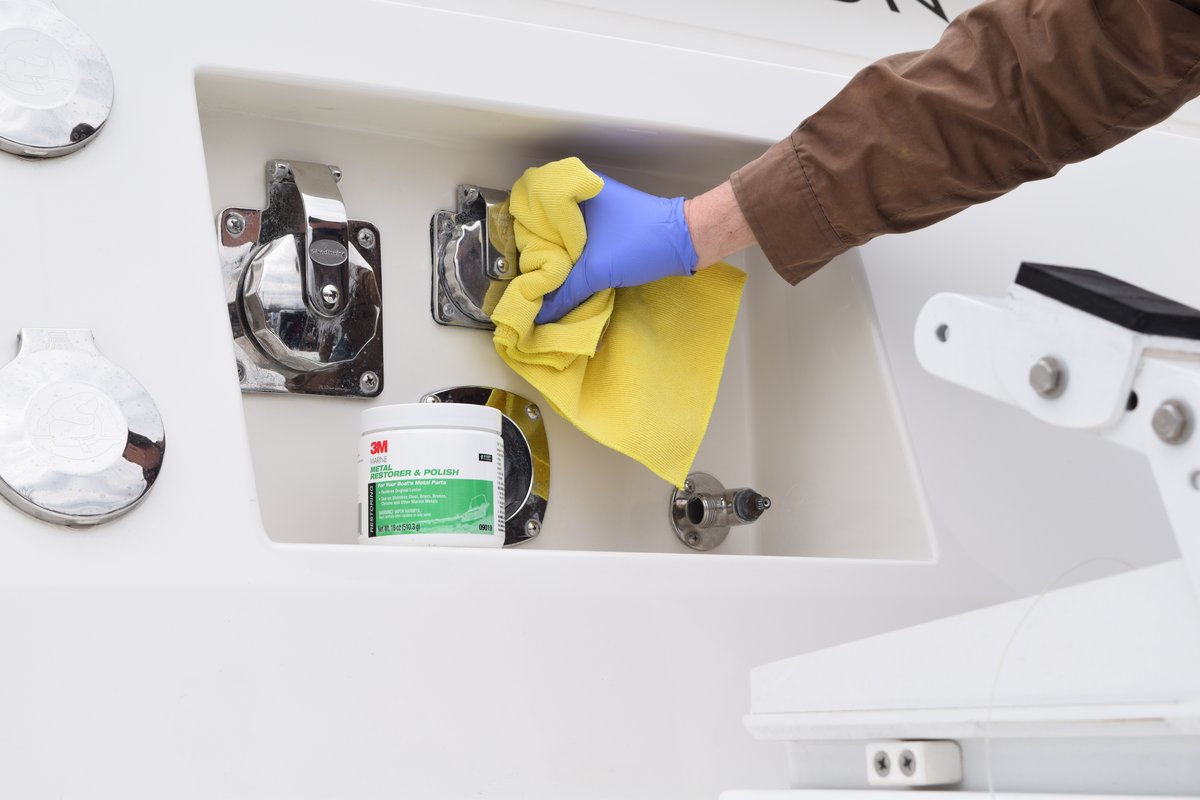 Behandeln Sie mit der 3M™ Metallschleifpaste und Politur schnell und einfach Bootsteile aus Edelstahl, Messing, Bronze, Kupfer und Chrom. Unsere spezielle Formel beseitigt Oxidation, Korrosion und Trübungen ganz einfach beim Polieren. Verleihen Sie allen Metallteilen einen professionellen Glanz.