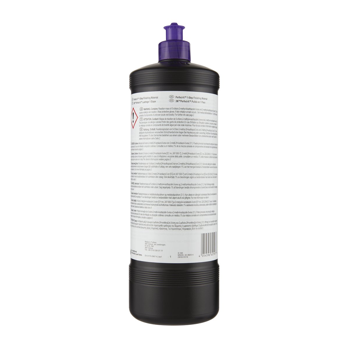 Das 3M™ Perfect-It™ 1-Step Finishmaterial ist ein hochleistungsfähiges Finishmaterial für hohen Abtrag zum Entfernen von 3M™ Trizact™ 8000 und feineren Kratzern von den meisten Lacken in einem Schritt. Es bietet den Abtrag einer Schleifpaste und das wirbelfreie Finish einer Politur.
