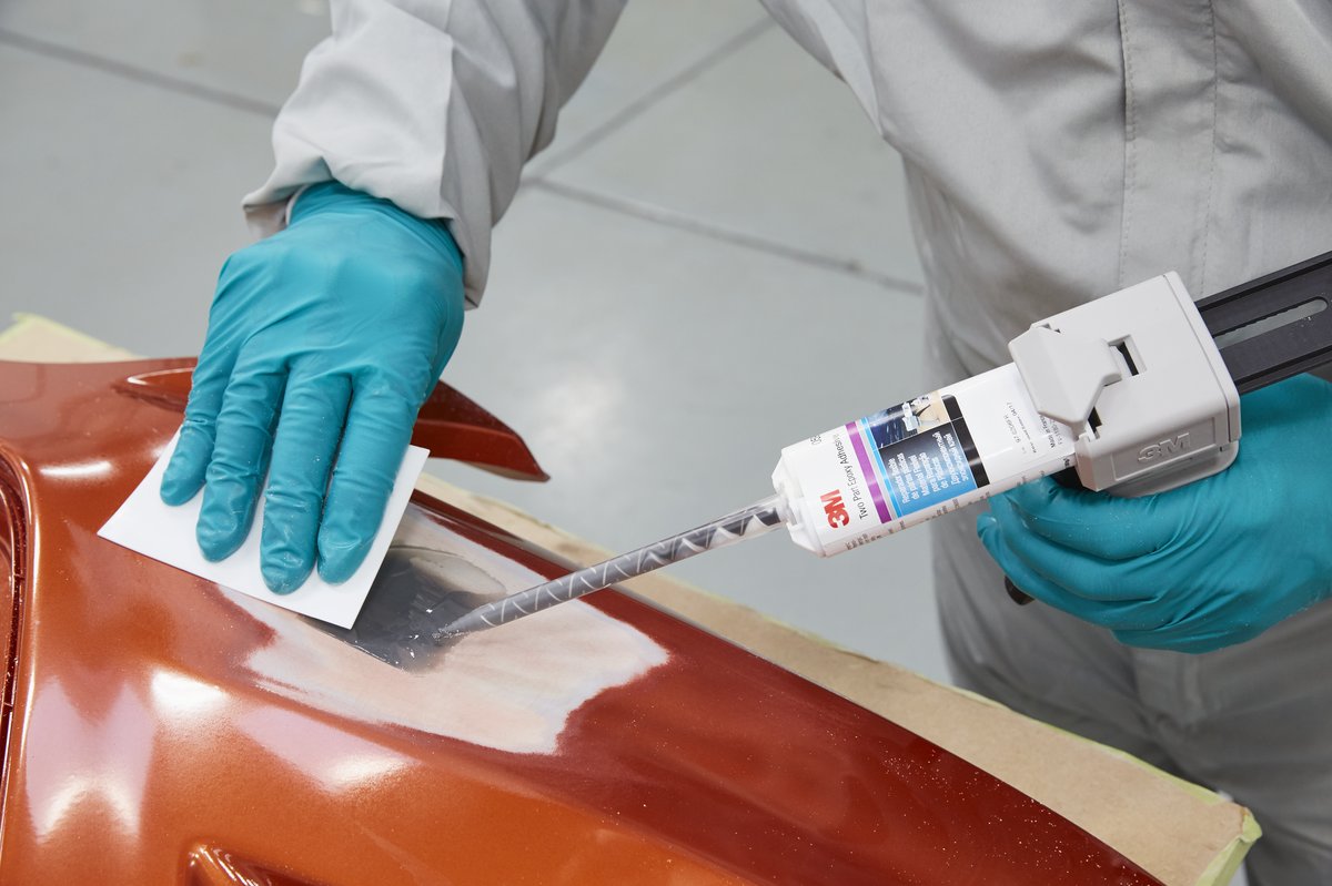 Verleihen Sie beschädigten Fahrzeugteilen aus Kunststoff mit der 3M™ Reparaturmasse für flexible Teile einen neuen Look. Unsere Reparaturmasse härtet rasch aus, ist flexibel und lässt sich leicht schleifen. Das Produkt ist einfach anzuwenden, sinkt nicht ein und eignet sich ideal für scharfkantiges Schleifen. Das Produkt eignet sich für die Vorder- und Rückseite von Kunststoffreparaturen sowie für die Anwendung in Kombination mit dem Kunststoff-Reparaturpflaster. Unsere Reparaturmasse für flexible Teile ist in Einzeltuben zum manuellen Mischen oder als Doppelkartusche mit automatischem Mischen beim Auftragen erhältlich. Tragen Sie unsere Reparaturmasse für flexible Teile mit der 3M Handdruckpistole 08190 und den 3M Düsen 08198 zusammen mit unserem Polyolefin-Haftvermittler auf.