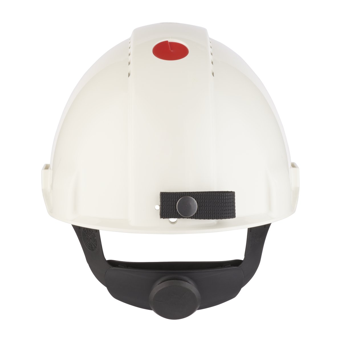 Der 3M™ Schutzhelm Serie G3000 bietet Kopfschutz für widrige Anwendungsbedingungen. Helme erfüllen die Anforderungen von EN 397:212+A1:2012 mit einer um 180° gedrehten Kopfbebänderung (von hinten nach vorne) Der Schutzhelm ist mit einem Pinlock- oder Ratschenverschluss und einem Kunststoff- oder Lederschweißband erhältlich. Er verfügt über ein leicht abgerundetes Design, das ein gutes Sichtfeld bietet und ein Verfangen in Kabeln oder Ästen verhindert. Er ist auch als Ausführung mit Belüftungslöchern erhältlich, die über einen großen Bereich verteilt sind und durch einen maximalen Luftdurchfluss für einen besseren Tragekomfort sorgen. Der kurze Schirm ermöglicht eine bessere Aufwärtssicht und ein 3M™ Uvicator™ Sensor informiert Sie, wenn Ihr Schutzhelm übermäßiger UV-Einstrahlung ausgesetzt war und ausgetauscht werden muss. Die Kopfbebänderung kann um 180° gedreht werden, um bei Arbeiten in engen Räumen ein besseres Sichtfeld zu ermöglichen. Helme erfüllen die Anforderungen von EN 397:212+A1:2012 mit einer um 180° gedrehten Kopfbebänderung (von hinten nach vorne) und elektrisch isolierte Versionen erfüllen die Anforderungen von EN 50365:2002 für den Einsatz in Niederspannungsanlagen