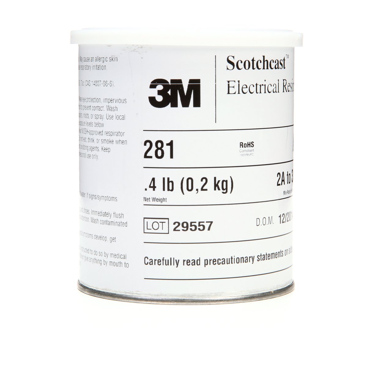 3M™ Scotchcast™ Elektroharz 281 weist eine niedrige Geliertemperatur auf, um einen schnellen Aushärtungsprozess sicherzustellen, wenn es in warmen Umgebungen aufbewahrt wird. Dank der hohen Zugfestigkeit des Harzes wird nach dem Aushärten eine semiflexible Konsistenz und eine gute Haftung erreicht. Das Gießharz eignet sich ideal für Anwendungen, die eine besonders hohe Beständigkeit gegen Thermoschocks und mechanische Stöße erfordern. Die hohe Durchschlagfestigkeit gewährleistet eine hervorragende elektrische Isolierung durch das Harz. Es weist einen hohen Flammpunkt auf, der dazu beiträgt, durch schnelle Entzündung entstehende Brände zu vermeiden. Dank der hydrolytischen Stabilität des Harzes wird die schnelle chemischen Zersetzung minimiert und eine lange Nutzungsdauer sichergestellt. RoHS EU 2015/863-konform.