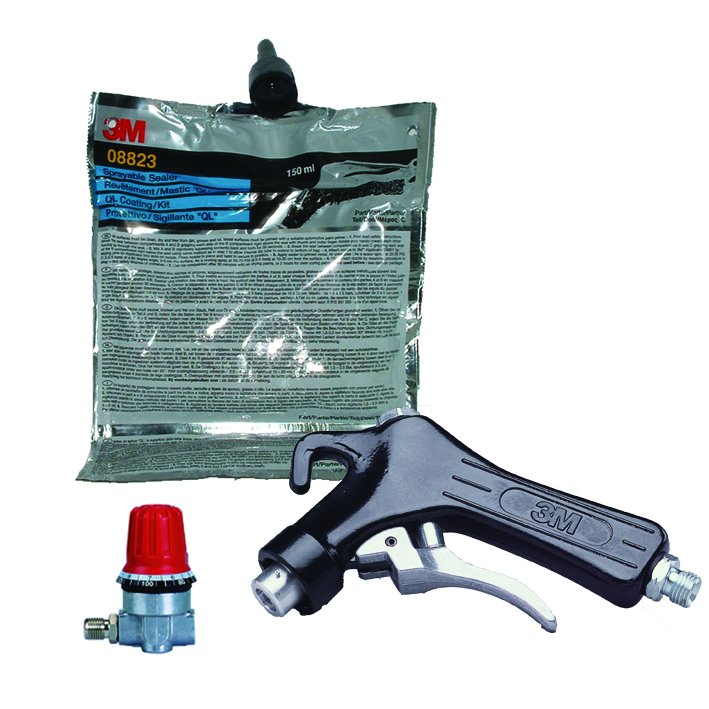 Die sprühbare 3M™ Zweikomponenten-Dichtungsmasse lässt sich sauber, schnell und einfach auftragen. Unsere schrumpfungsfreie Dichtungsmasse kann zur Beschleunigung des Aushärtens erwärmt werden, sodass die betreffende Fläche schon nach 30 Minuten lackiert werden kann. Mit einem anderen Sprühwinkel erzielen Sie einen Riffeleffekt mit unserer Zweikomponenten-Dichtungsmasse. Das Produkt bildet das ursprüngliche Erscheinungsbild der Dichtungen an den Fahrzeugfugen nach und eignet sich zum Reparieren von Steinschlagschutz-Beschichtungen. Das einzigartige polyurethanhaltige Zweikomponenten-Dichtungsmittel ist in einem Aluminiumbeutel verpackt. Die Pistole kommt beim Mischen nicht in direkten Kontakt mit dem Dichtungsmittel, muss also nach dem Auftragen nicht gereinigt werden.