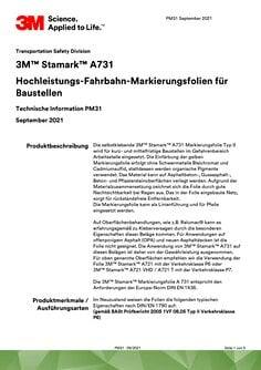 Eine stark reflektierende Markierungsfolie für den Einsatz bei Trockenheit und Nässe. Die Markierungsfolie Serie A731 ist ein anpassungsfähiges, gelbes Markierungsband für die Längsmarkierung in Baustellenbereichen auf Autobahnen, in denen die temporäre Verlegung erforderlich ist. Nach Abschluss der Bauarbeiten lässt sich das Band intakt oder in größeren Stücken wieder entfernen.