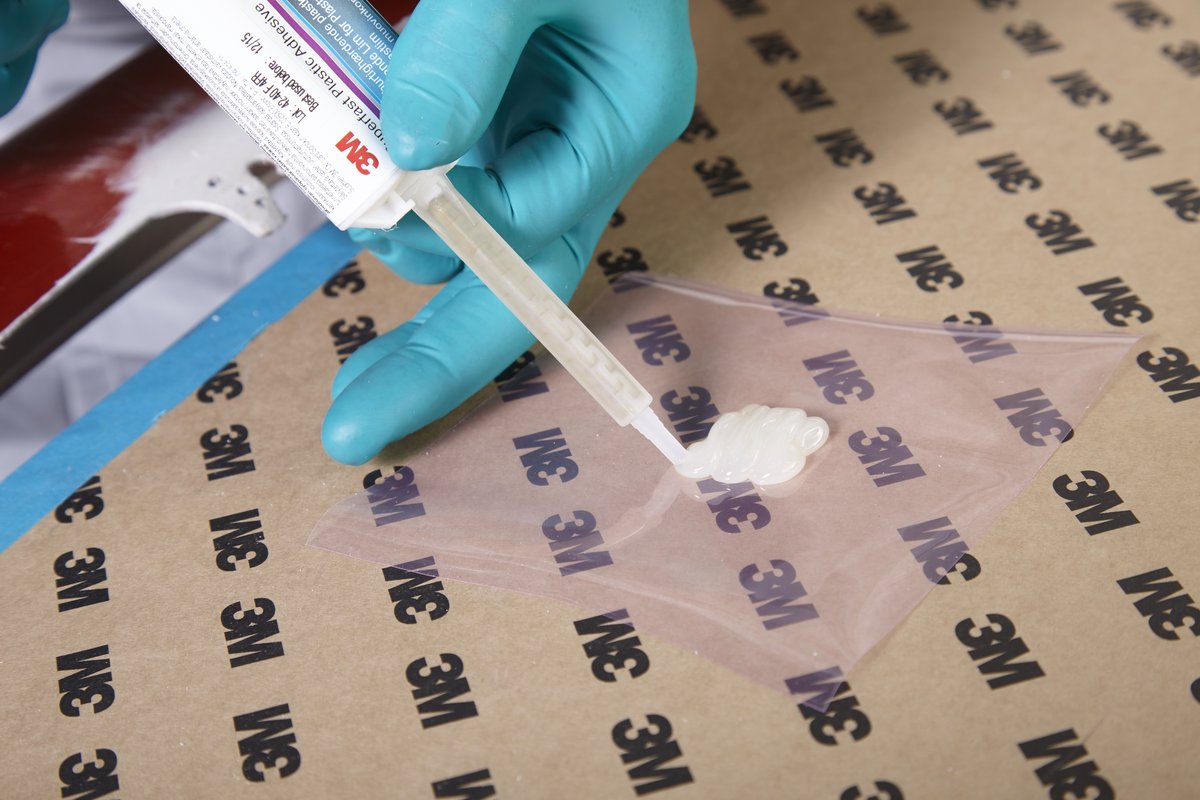 Mit dem 3M™ Reparaturklebstoff ist kein separater Beschleuniger mehr erforderlich. Mit unserem Klebstoff können Sie beschädigte Kunststoffteile an Fahrzeugen äußerst rasch reparieren und sogar gebrochene Laschen neu aufbauen. Mit dem Produkt lassen sich alle Kunststoffarten ohne Verlaufen und Einsinken noch sauberer und noch haltbarer neu aufbauen, neu formen und verkleben.
