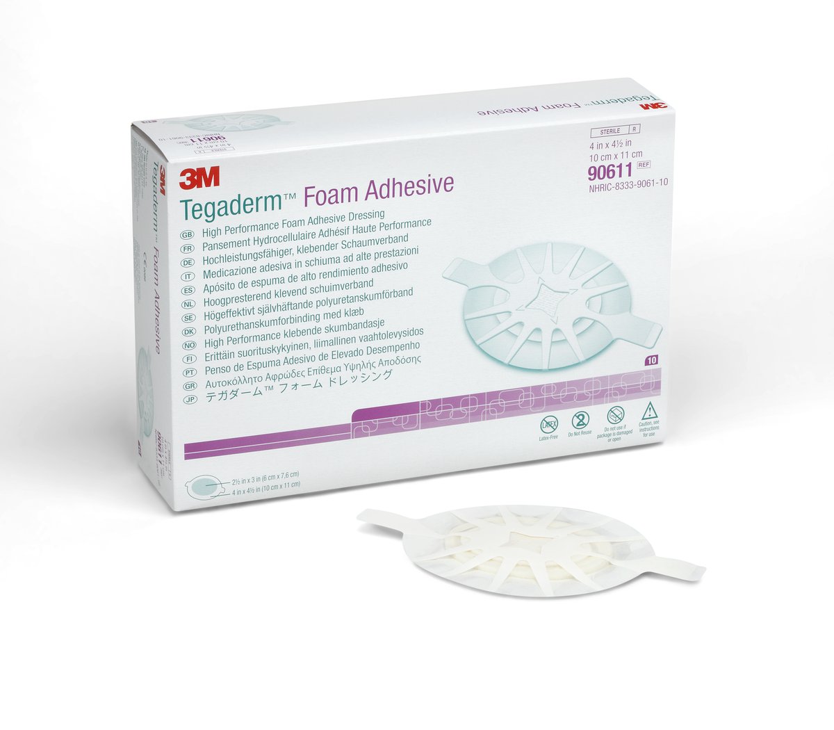Mobile Preview: 3M™ Tegaderm™ Foam Adhesive Hochleistungsfähiger, klebender Schaumverband, 90611, 10 cm x 11 cm, 10 / Packung, oval mit Kleberand
