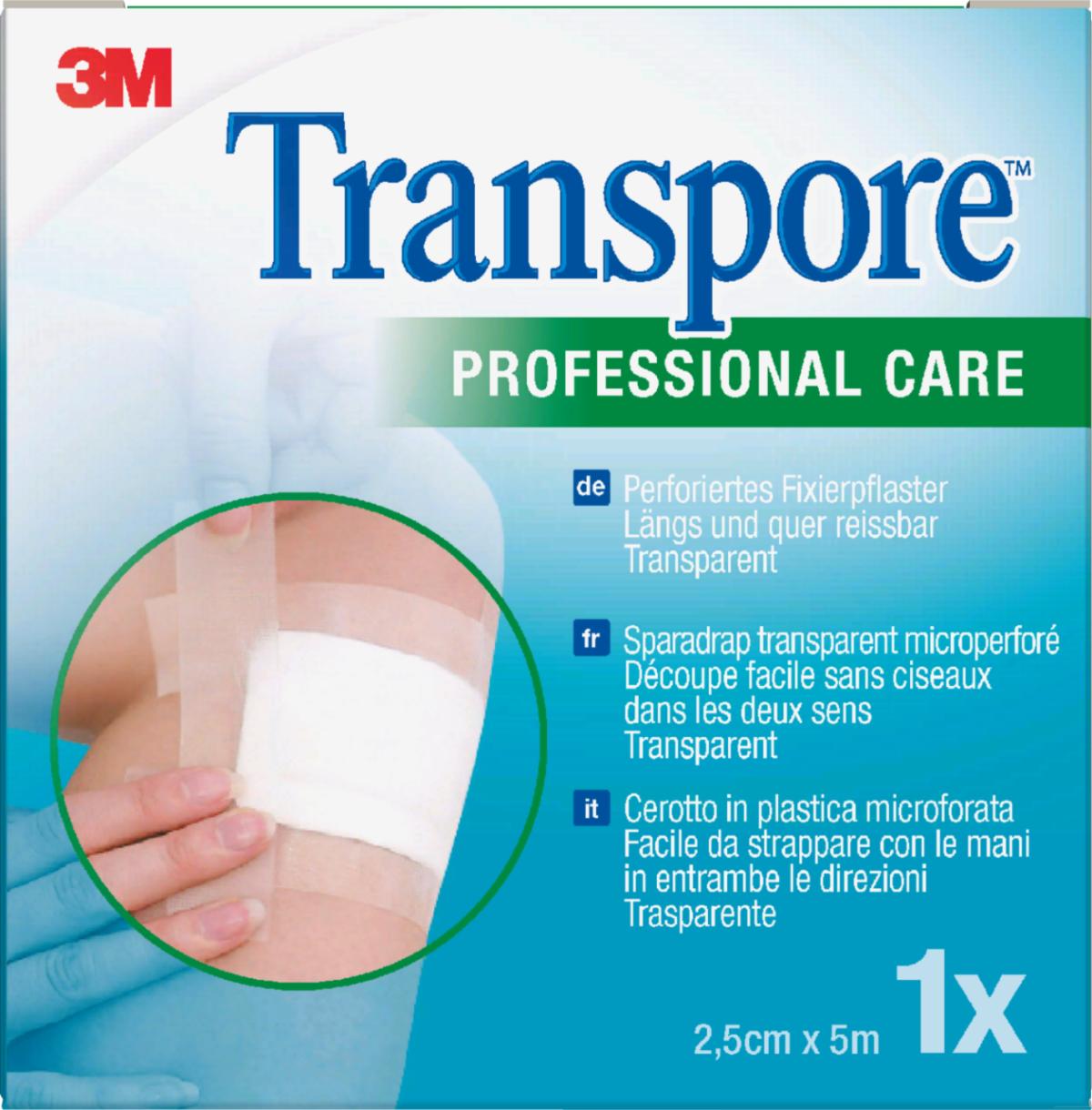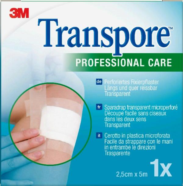3M™ Transpore™ ist ein praxiserprobtes Fixierpflaster mit Polyethylenträger. Das transparente, perforierte Pflaster lässt sich leicht in Quer- und Längsrichtung reißen und kann in vielen Bereichen der stationären Behandlung eingesetzt werden.