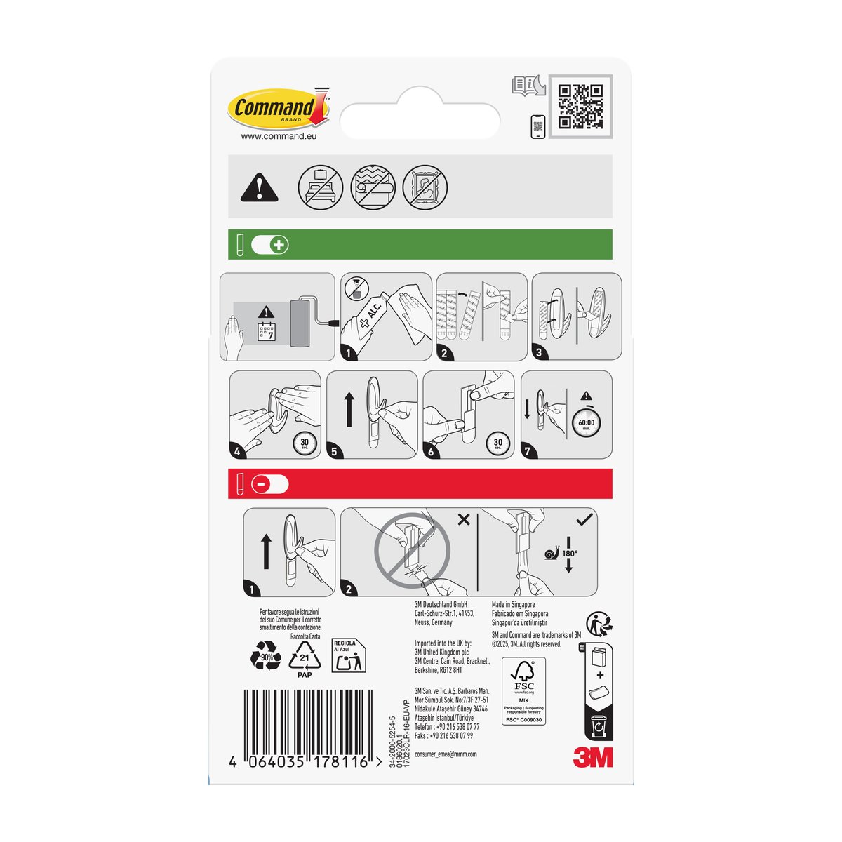 - ideal als doppelseitiger Strip oder als Nachfüllpackung für Command™ transparente Haken. Command™ ablösbare Klebestreifen sind nicht zum Aufhängen von Bildern geeignet. Verwenden Sie stattdessen Command™ Bildermontagestreifen, um Rahmen und Kunstwerke aufzuhängen