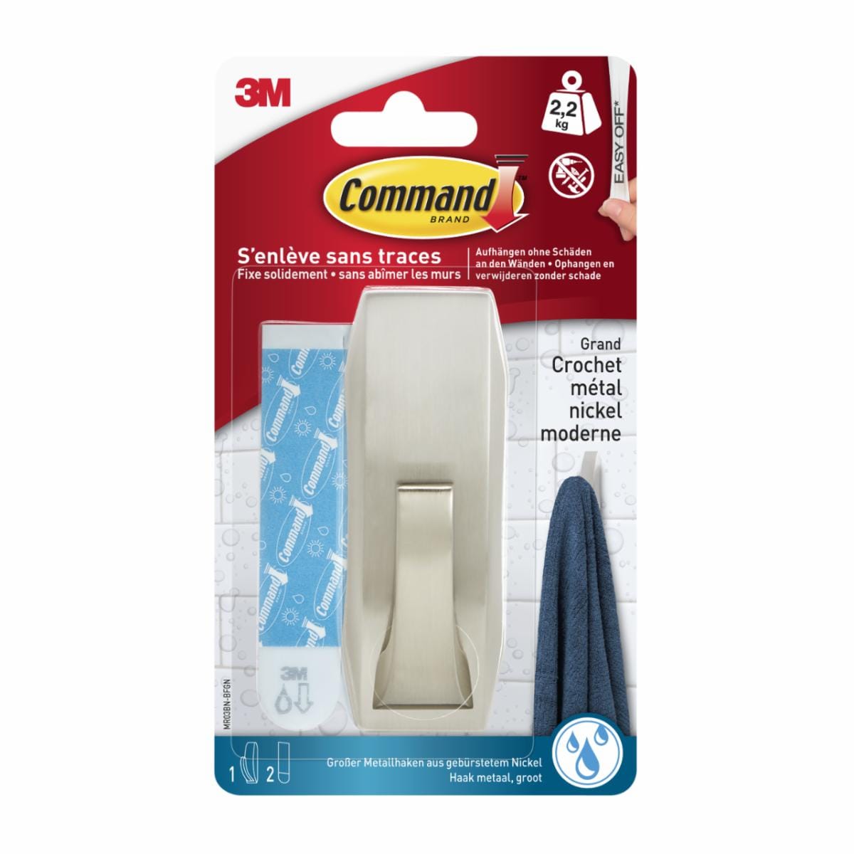 Die Command™ Bad Large Metallhaken "Modern Reflection" mit wasserresistenten Strips ist unsere innovative Lösung zum sicheren und beschädigungsfreien Anbringen von Küchenutensilien und anderen schweren Objekten in nassen und feuchten Räumen. Die Strips gewährleisten einen starken Halt und lassen sich sauber wieder abziehen – beschädigungsfrei dank 3M Technologie.