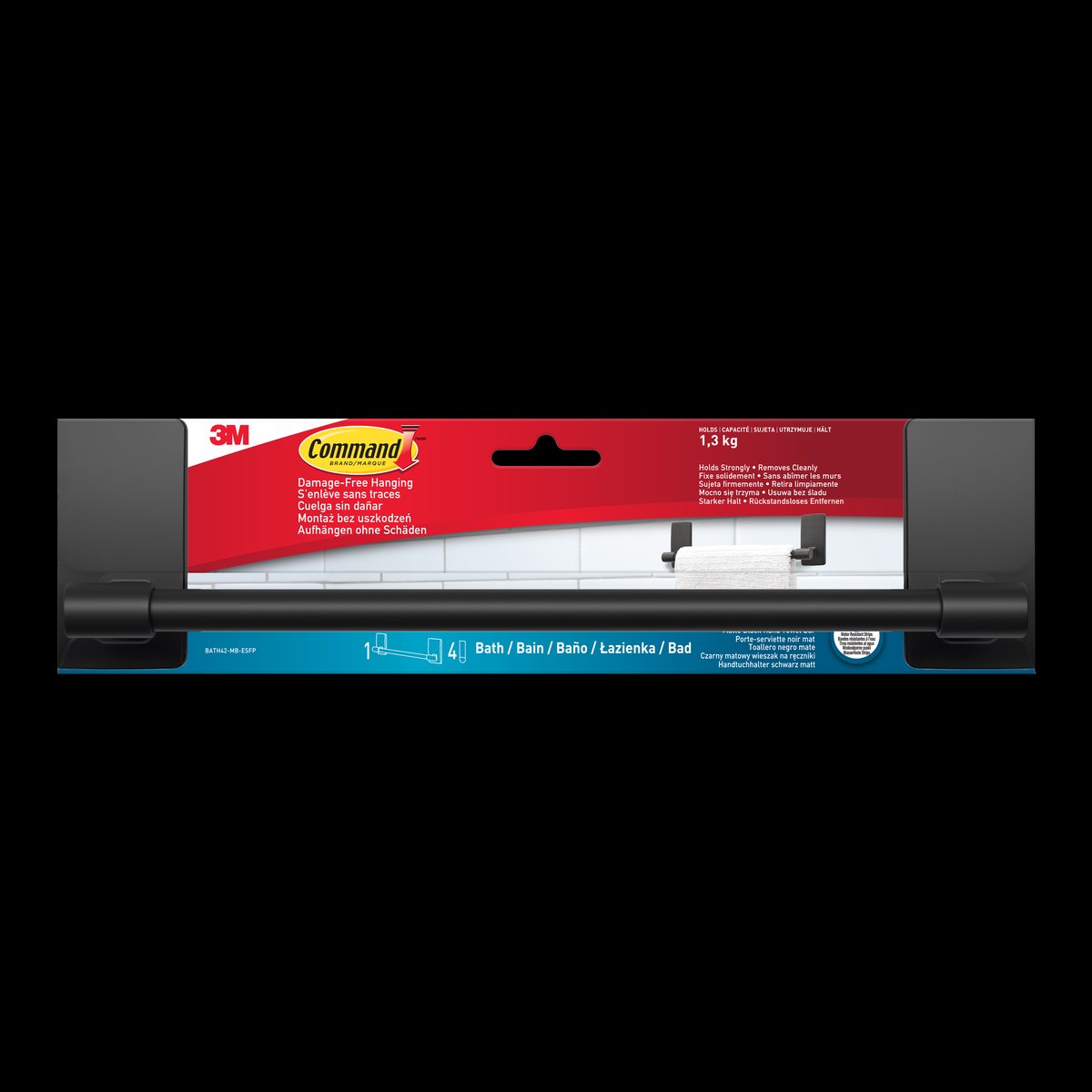 Nutzen und Einsatzmöglichkeiten von "Command™ Handtuchhalter für Badezimmer BATH42-MB-ESFPL, Mattschwarz, 1 Handtuchhalter + 4 Streifen"