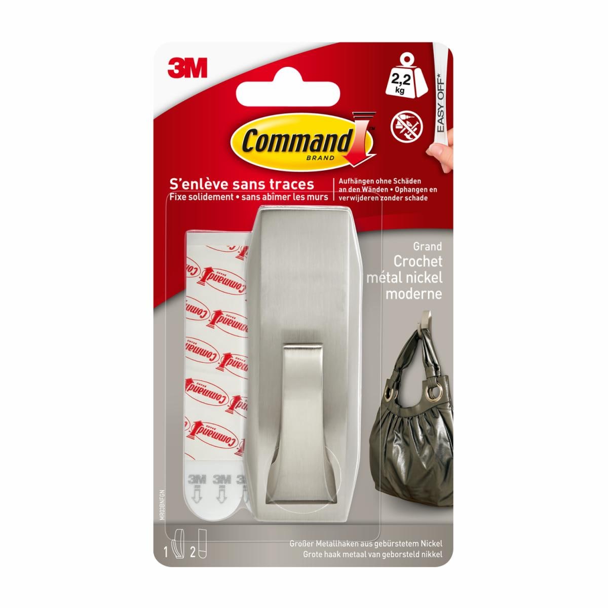 Befestigen Sie mit Command™ Large Metallhaken "Modern Reflection" zu Hause diverse Alltagsgegenstände. Dieser schicke Metallhaken verleiht jedem Raum im Haus den letzten Schliff. Der Haken mit einer Tragkraft von 2,2 kg hält sehr gut auf einer Vielzahl von Oberflächen, beispielsweise an massiven, hohlen und gestrichenen Wänden. Unser großer Dekorationshaken im gebürsteten Metall-Look lässt sich leicht anbringen und entfernen. Er hinterlässt weder Löcher, Abdrücke, Klebereste noch Flecken. Mit wiederbefüllbaren Command™ Strips können Sie diese Haken auch in anderen Räumen und für eine Vielzahl von Dingen wiederverwenden. Jede Packung enthält einen Haken und zwei Strips.