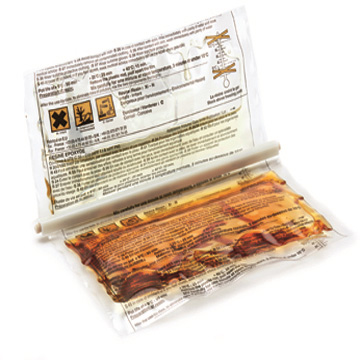 Präzise Verpackung von vorverwogenem Harz und Härter. Einfaches Anmischen aufgrund des Gewichtsverhältnisses Harz/Härter von 1/1. Polymerisiert unter feuchten Bedingungen ohne Blasenbildung. Topfzeit angepasst an gemäßigte Klimas. Herausragende Haftung auf PVC und PE. Entspricht UTE-Standard C 33-010. Nach dem Anmischen im Doppelbeutel ist das verbleibende Produkt vollkommen reaktionsfest.