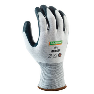 Nylon-Strickhandschuh. Nitrilbeschichtete wasserfeste Handfläche an der Hand. Länge 25 cm