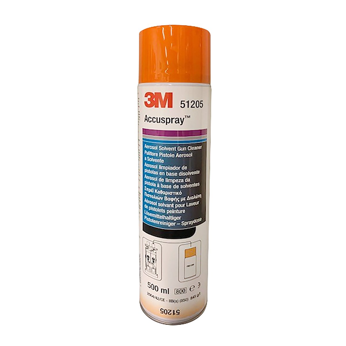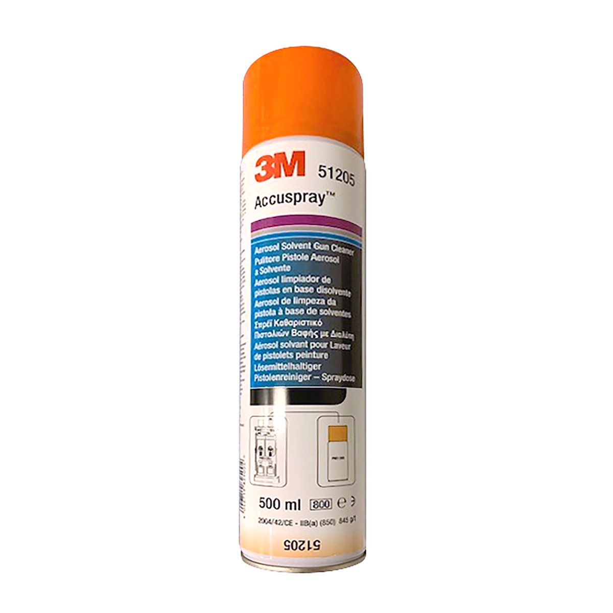 Das Reinigungs-Aerosol für das Reinigungsgerät für 3M™ Accuspray™ Pistolen ist in zwei Ausführungen erhältlich: Lösungsmittelhaltig (Art.-Nr. 51205) und wasserbasiert (Art.-Nr. 51206). Speziell auf das Reinigungsgerät für 3M™ Accuspray™ Pistolen (Art.-Nr. 51203) abgestimmt.