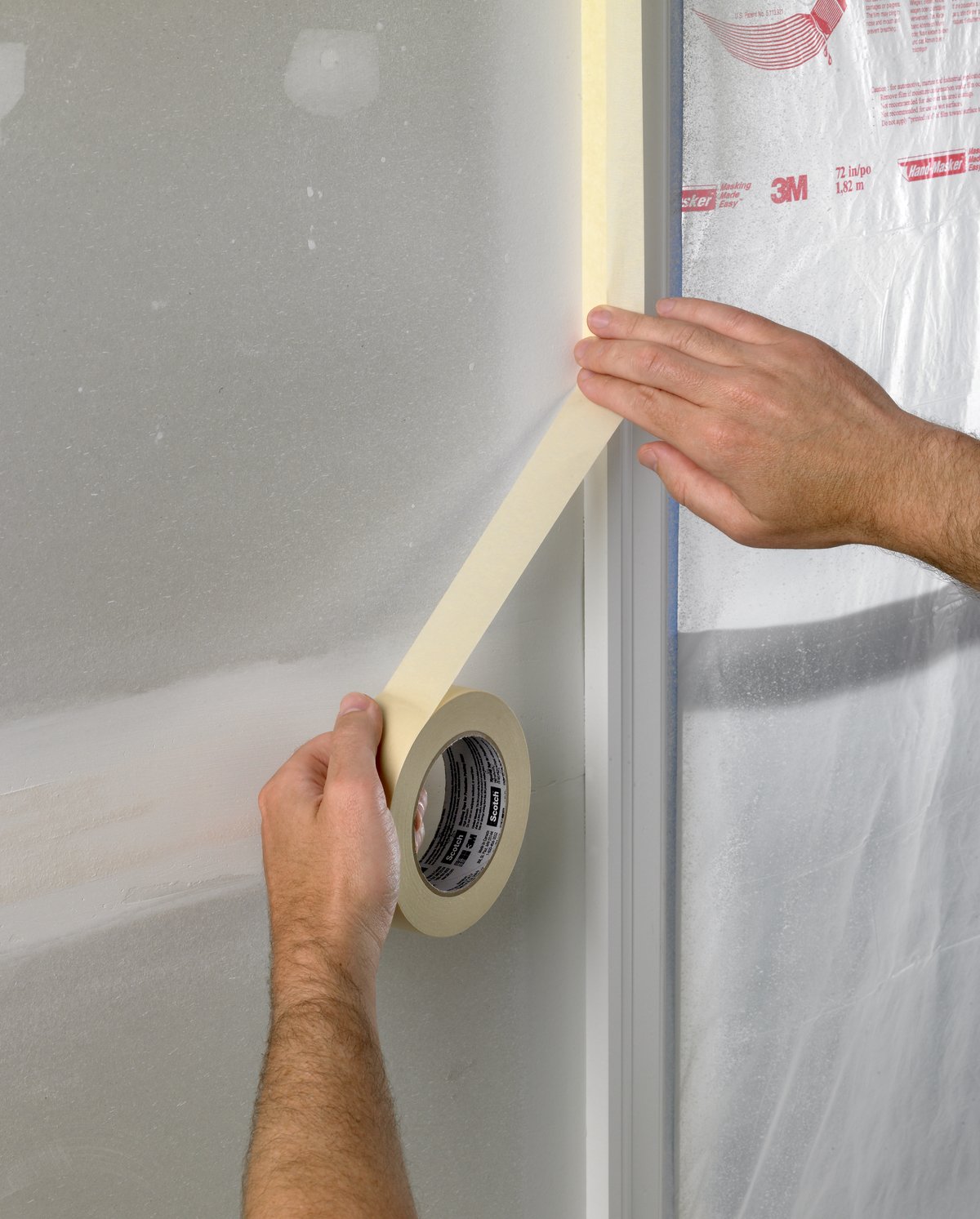 - TIPPS ZUM ENTFERNEN DES ABDECKBANDS Ziehen Sie das Abdeckband erst ab, wenn die Farbe handtrocken ist. Ziehen Sie es über sich selbst hinweg in einem Winkel von 45 Grad ab.