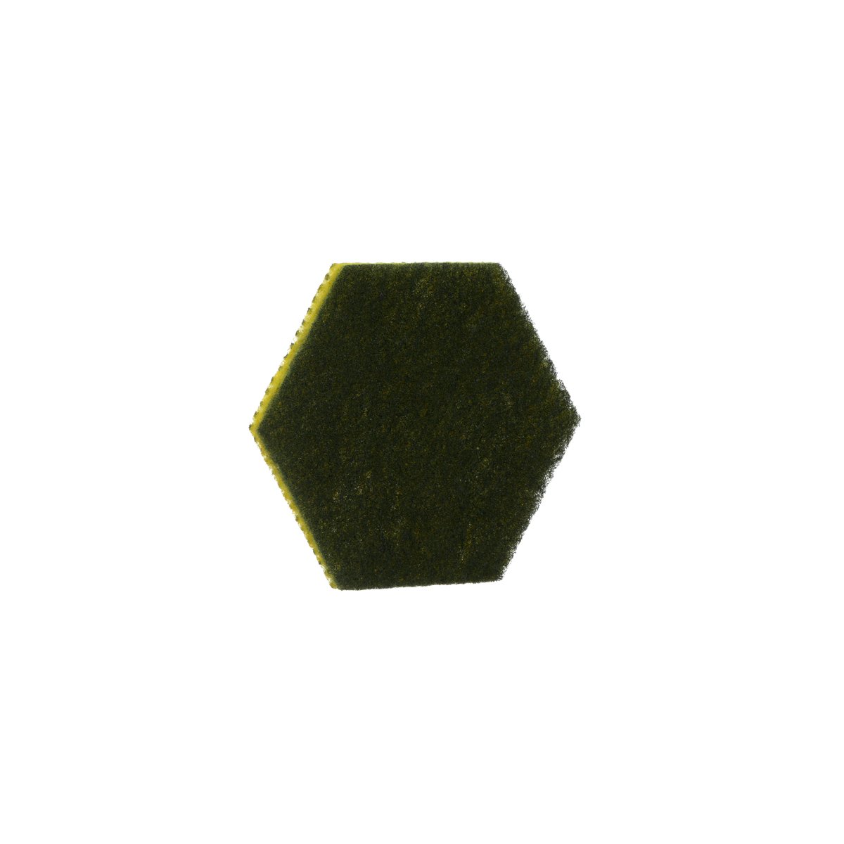 Das Scotch-Brite™ 2-in-1 Handpad 96HEX ist ein sechseckiges Reinigungspad, mit dem Sie auch schwer zugängliche Stellen in Töpfen und Pfannen leicht erreichen. Er verfügt über eine gelbe, erhabene Power Dot-Seite, die zum Abtragen von angebackenen Speisen entwickelt wurde, und eine grüne Seite, die feine Partikel sowie Fett entfernt und eine saubere, glänzende Oberfläche hinterlässt.
