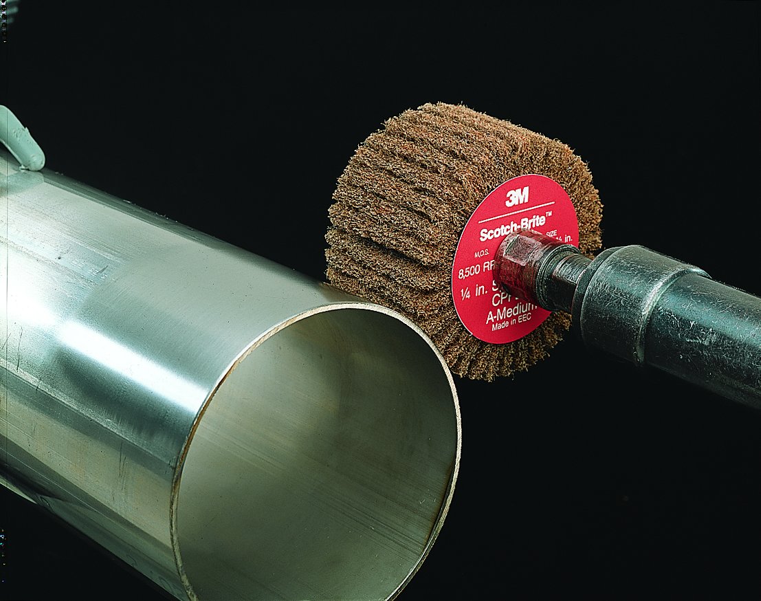 Scotch-Brite™ Lamellenbürsten PF-ZR bestehen aus einem Scotch-Brite™ Material mit höherer Aggressivität und erzielen ein gleichmässiges, dichtes und mattes Strichbild. Mit 3M™ Roloc™ Schnellwechselsystem.