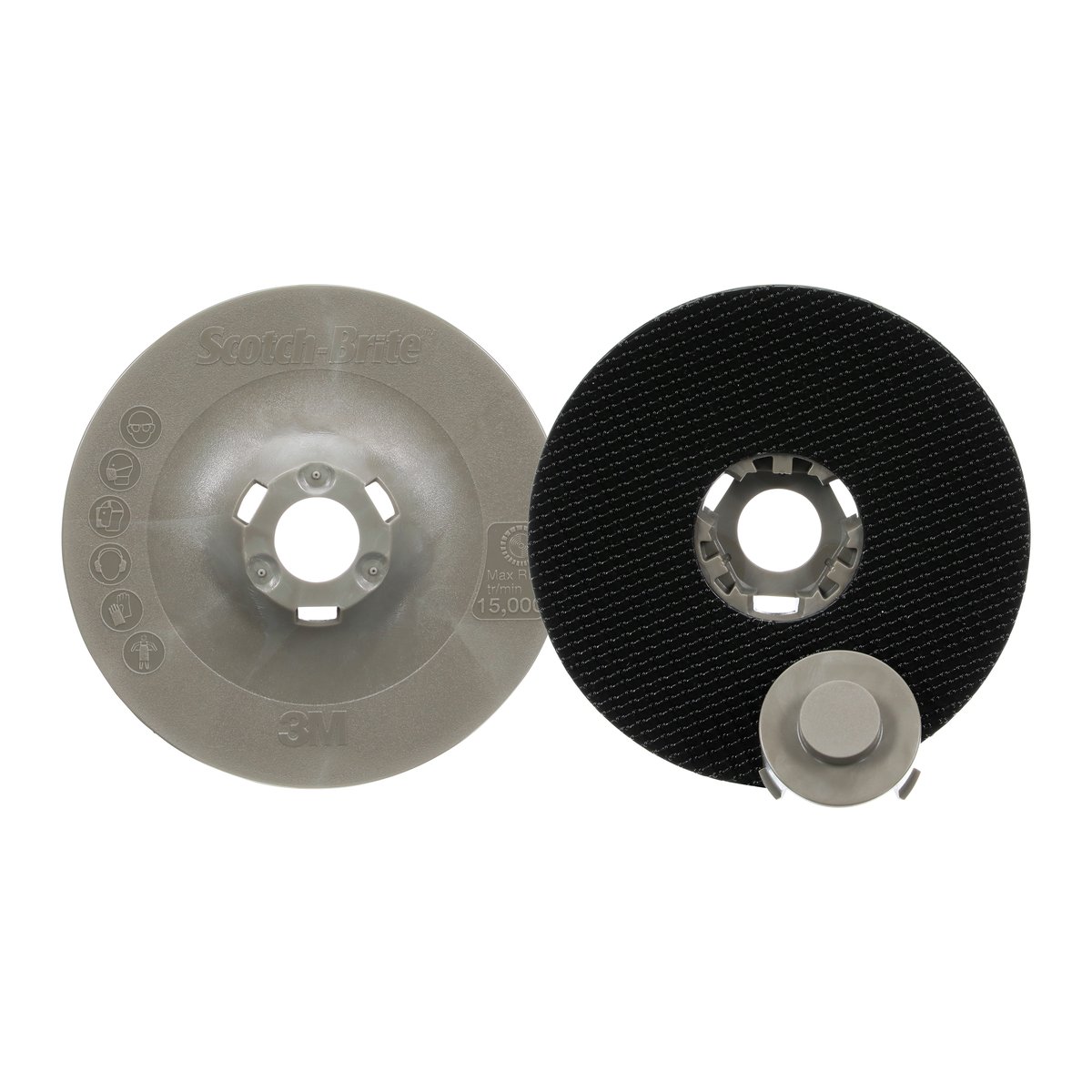 - Verfügbar in Durchmessern von 100 mm, 115 mm and 125 mm, um entsprechende Scotch-Brite™ Vliesscheiben aufnehmen zu können