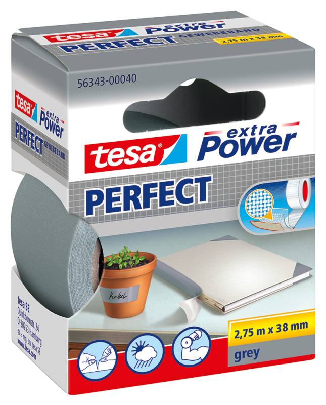 Eigenschaften von tesa extra Power® Perfect Gewebeband, 2,75m x 38mm, grau