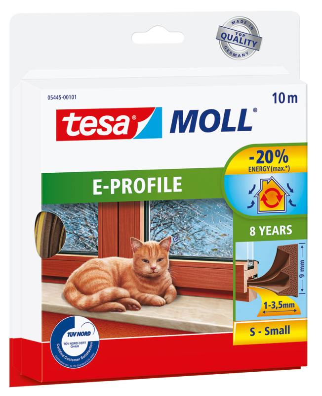 Mit der hochwertigen tesamoll® E-Profil Gummidichtung können Sie kleine Spalten in Fenstern und Türen abdichten und dadurch bis zu 20% Energie einsparen (bei entsprechender Spaltabdeckung). Dank der überlegenen tesa®-Klebetechnologie ist die Montage des Dichtungsstreifens ein echtes Kinderspiel. Sie müssen vor der Anwendung lediglich die Oberfläche gründlich reinigen und können dann damit beginnen, die Gummidichtung anzubringen. Außer einem Teppichmesser oder einer Schere benötigen Sie kein Werkzeug. Die Dichtung hat eine Mindestlebensdauer von acht Jahren und lässt sich nach dem Gebrauch problemlos wieder entfernen. Die Gummidichtung schützt nicht nur vor Zugluft, sondern auch vor Geräuschen und Gerüchen.