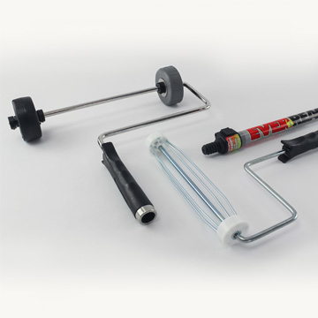 TRIM TACK® Rollengriffe werden mit unseren Schaum- und Filmrollenpatronen verwendet. Schieben Sie die Patrone einfach wie einen Farbroller auf den Griff.